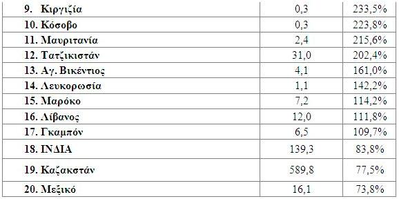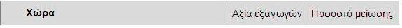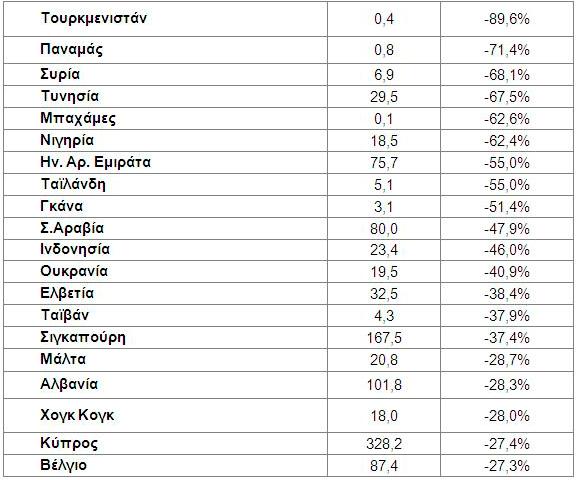 Ακολουθεί πίνακας με τις 20 χώρες με τη μεγαλύερη μείωση των εξαγωγών.