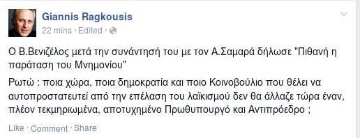 Συγκεκριμένα, ο κ. Ραγκούσης έγραψε: