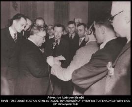 Ανακοίνωσις του Πρωθυπουργού Ι. Μεταξά προς τους ιδιοκτήτας και αρχισυντάκτας του Αθηναϊκού Τύπου εις το Γενικόν Στρατηγείον (ξενοδοχείον “Μεγάλη Βρεταννία”) εις τας 30 Οκτωβρίου 1940