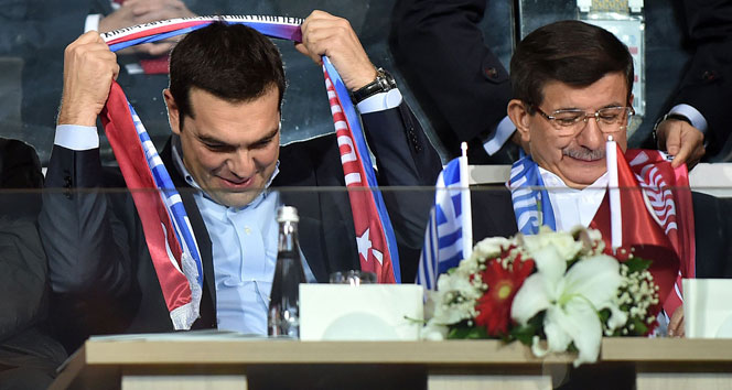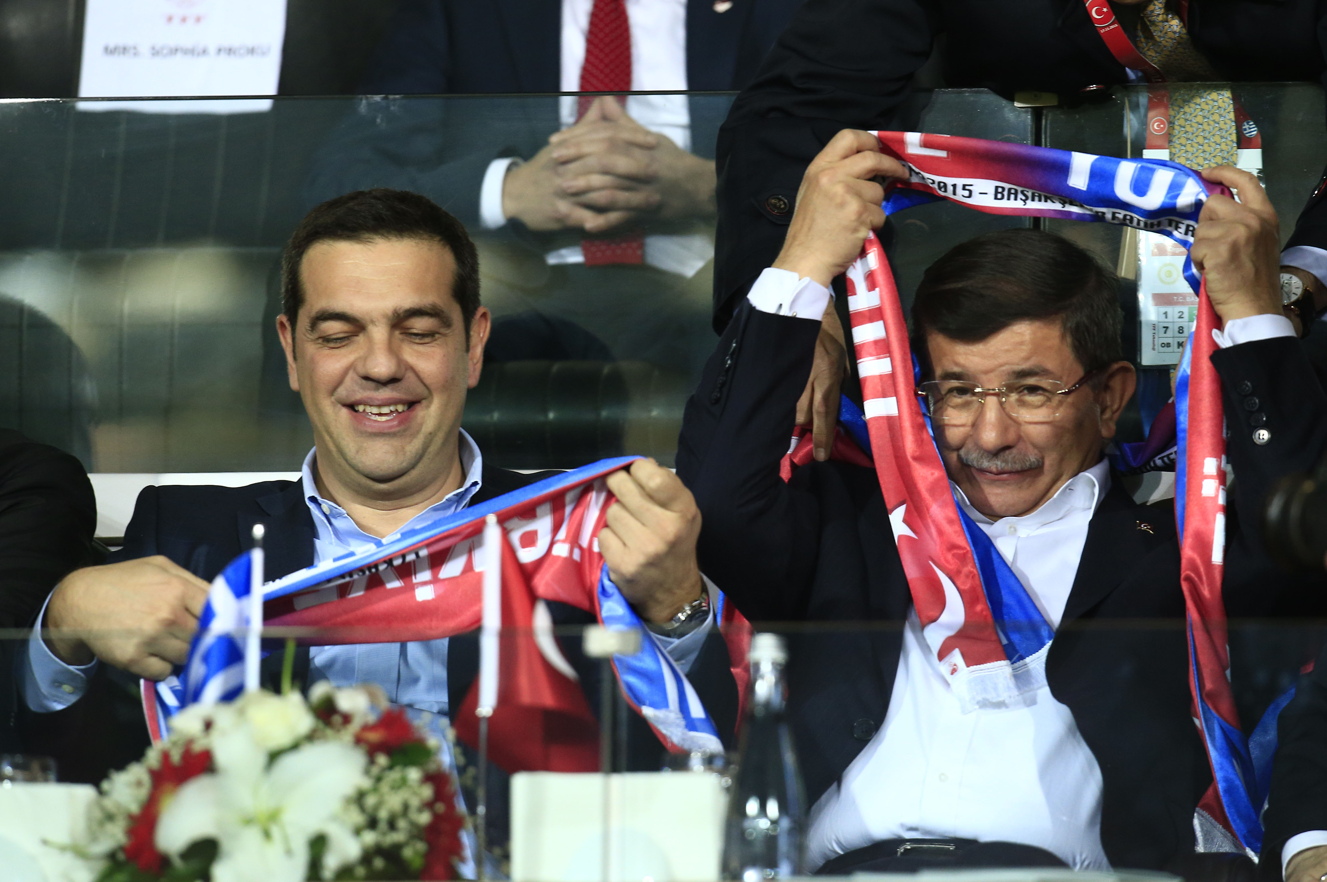 Ο πρωθυπουργός της Ελλάδας συναντήθηκε με τον Νταβούτογλου και παρακολούθησαν παρέα το φιλικό των δύο χωρών, φορώντας μάλιστα