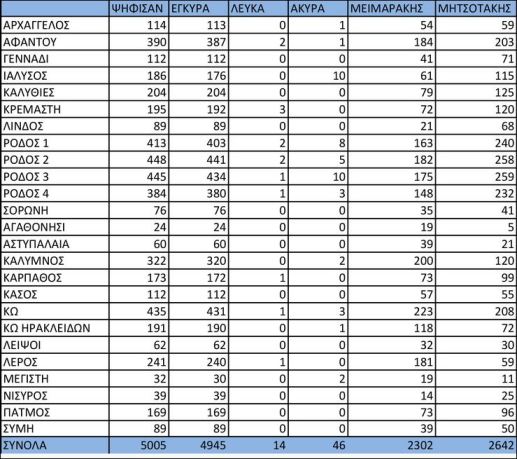 Τα πρώτα αποτελέσματα από τα Δωδεκάνησα σημειώνουν, σύμφωνα με το rodiaki.gr: