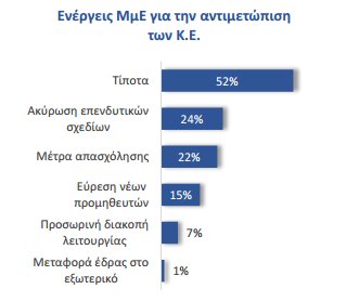 - το 35% περιόρισε την απασχόληση είτε μέσω απολύσεων είτε μέσω υποχρεωτικών αδειών (έναντι 22% κ.μ.ο. για το σύνολο των ΜμΕ),
