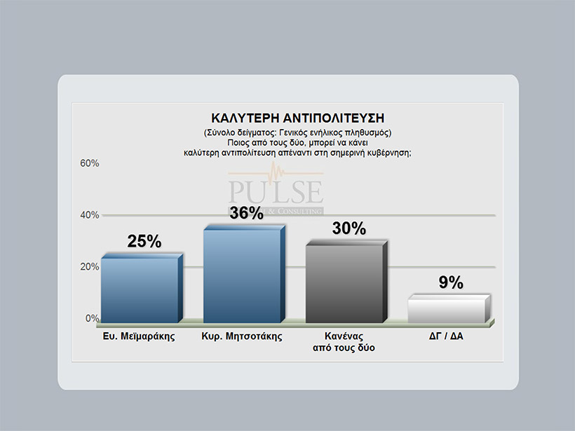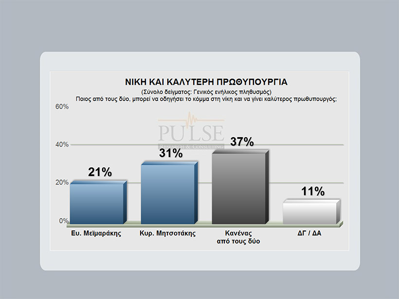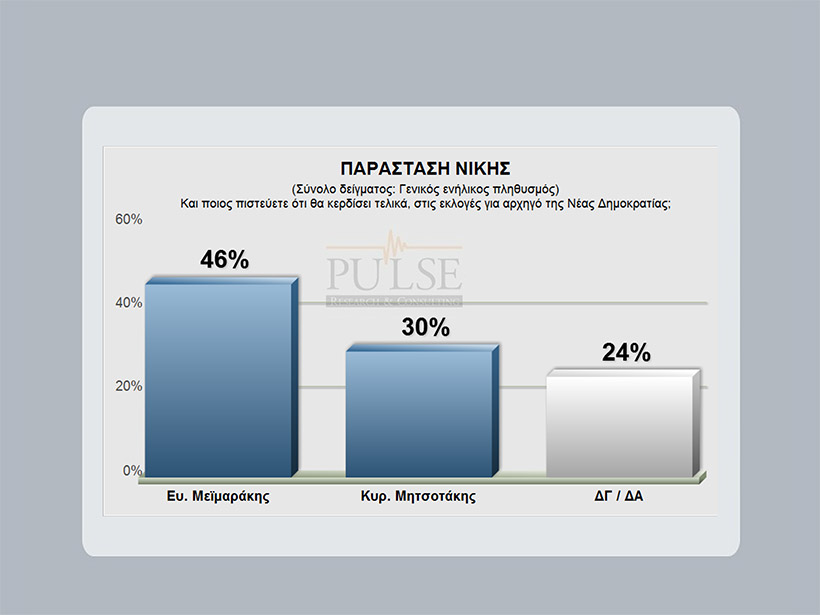 Στην παράσταση νίκης ο Βαγγέλης Μεϊμαράκης συγκεντρώνει το 46% και ο Κυριάκος Μητσοτάκης το 30%.