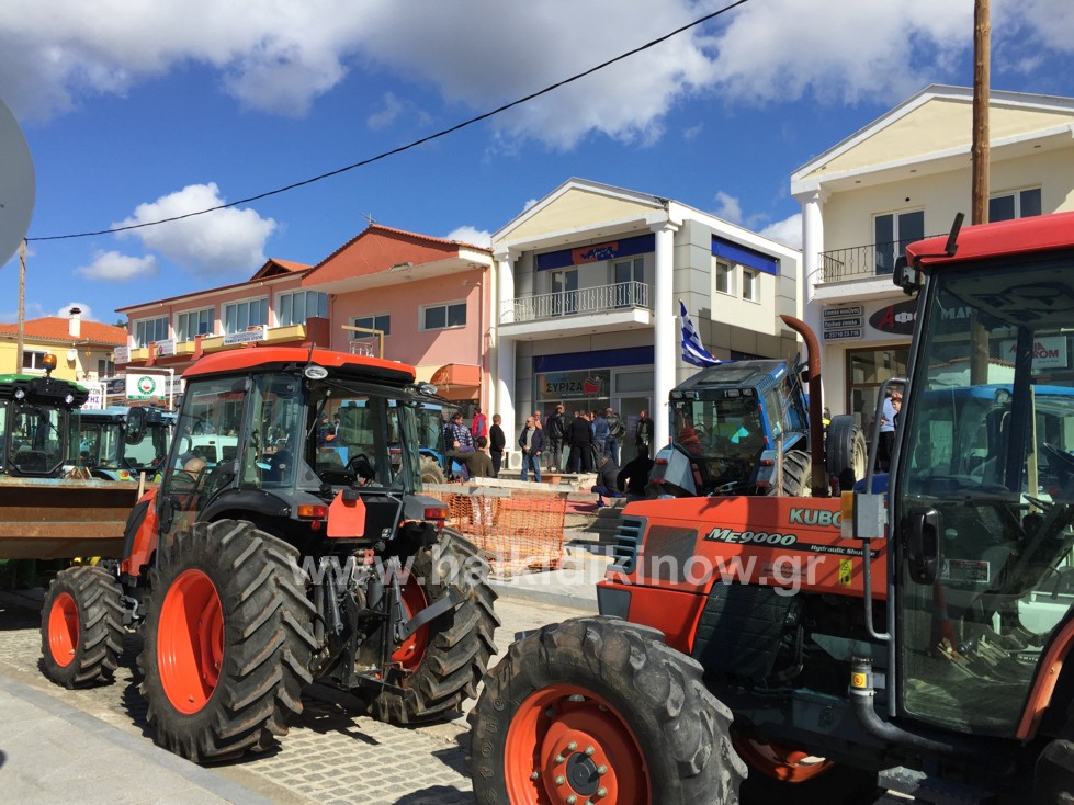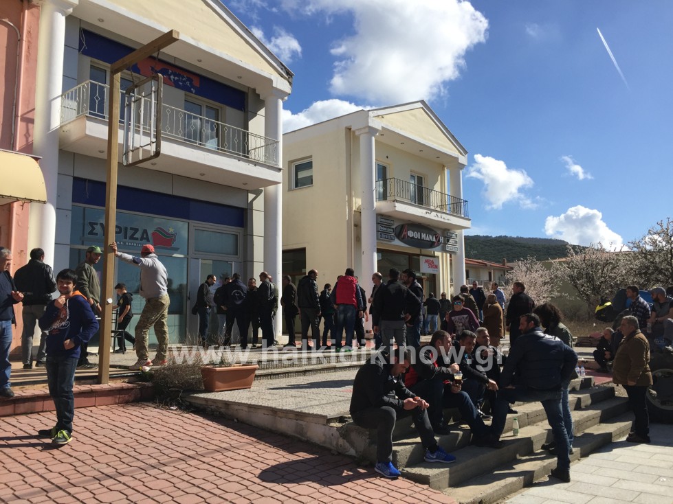Με τρακτέρ και αγροτικά οχήματα «επισκέφθηκαν» το πολιτικό γραφείο της βουλευτού του ΣΥΡΙΖΑ, Κατερίνας Ιγγλέζη, αγρότες από τη Χαλκιδική.