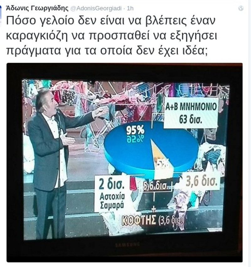Πηγή: Αδωνις για Λαζόπουλο: Ενας καραγκιόζης προσπαθεί να εξηγήσει πράγματα για τα οποία δεν έχει ιδέα | iefimerida.gr http://www.iefimerida.gr/news/267477/adonis-gia-lazopoylo-enas-karagkiozis-prospathei-na-exigisei-pragmata-gia-ta-opoia-den#ixzz48zuoe4KL