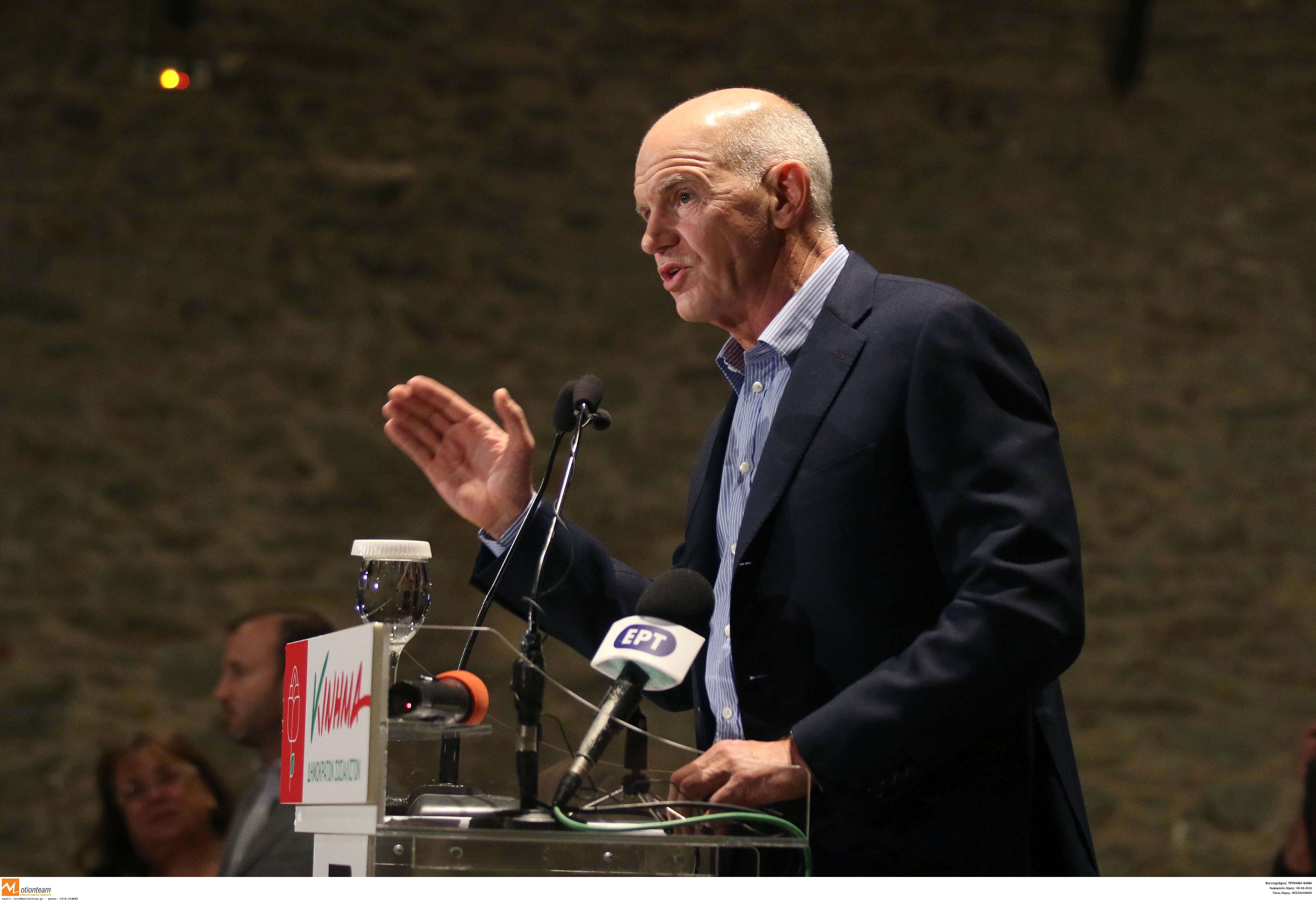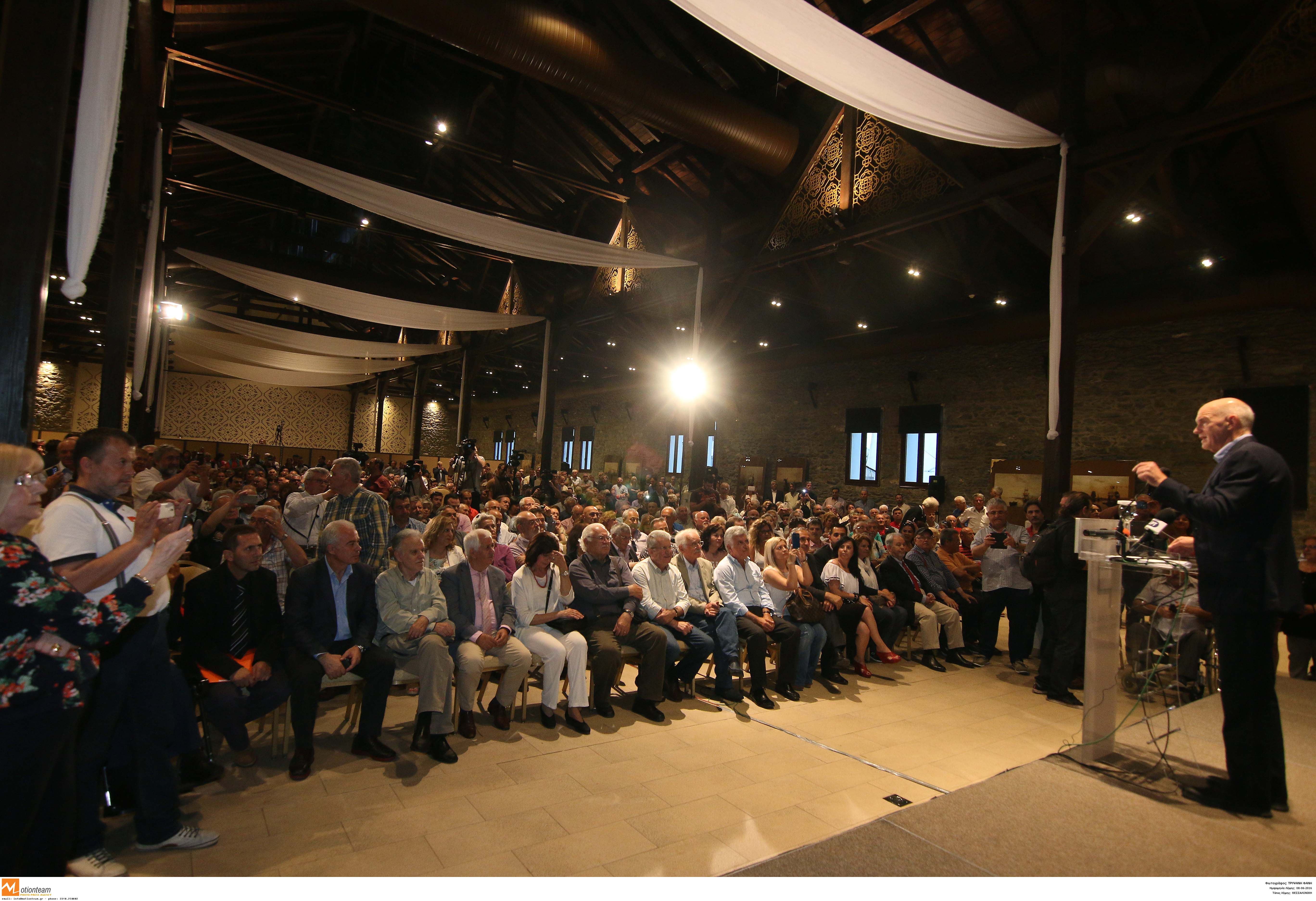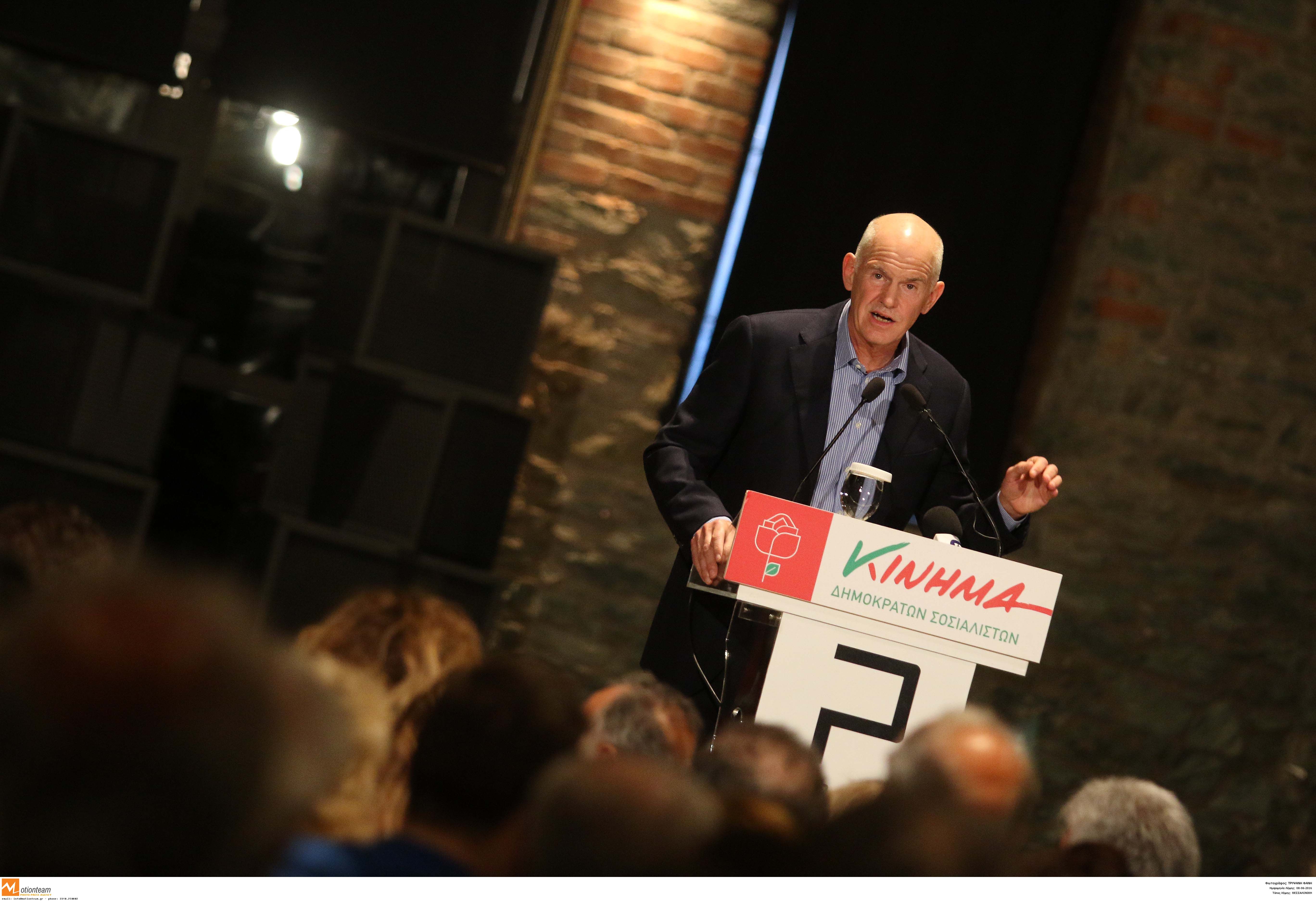 Ο Γιώργος Παπανδρέου μίλησε σε πολιτική συγκέντρωση στο ξενοδοχείο «Πόρτο Παλάς», όπου μέλη του ΚΙΔΗΣΟ του επιφύλαξαν θερμή υποδοχή με χειροκροτήματα και φωνάζοντας ρυθμικά «Παπανδρέου».