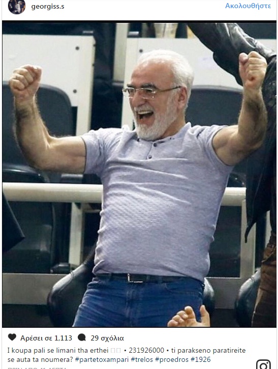 Σε ανάρτηση, στον προσωπικό του λογαριασμό στο Instagram, έγραψε: «Η κούπα πάλι σε λιμάνι θα έρθει. 231926000. Κουίζ: τι παράξενο παρατηρείται σε αυτά τα νούμερα;».
