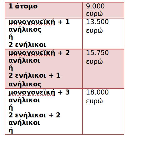 - Το συνολικό ύψος εισοδήματος, έως έξι μήνες πριν από την υποβολή της αίτησης, δεν μπορεί να υπερβαίνουν τα ποσά στον παρακάτω πίνακα: