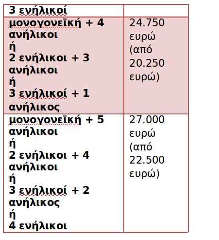 Μετά από τις βελτιωτικές παρεμβάσεις ο πίνακας με τα εισοδηματικά κριτήρια για τη δεύτερη κατηγορία διαμορφώνεται ως εξής: