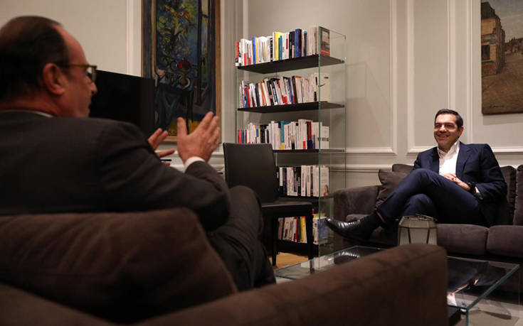 Οι δυο άντρες μίλησαν για την Ελλάδα και τη Γαλλία αλλά και την Ευρώπη. Ο τέως Πρόεδρος της Γαλλίας ήταν στο πλευρό του Αλέξη Τσίπρα όταν εκείνος διαπραγματευόταν με την Ευρώπη για τα μνημόνια και το χρέος της Ελλάδας, ως πρωθυπουργός της χώρας.