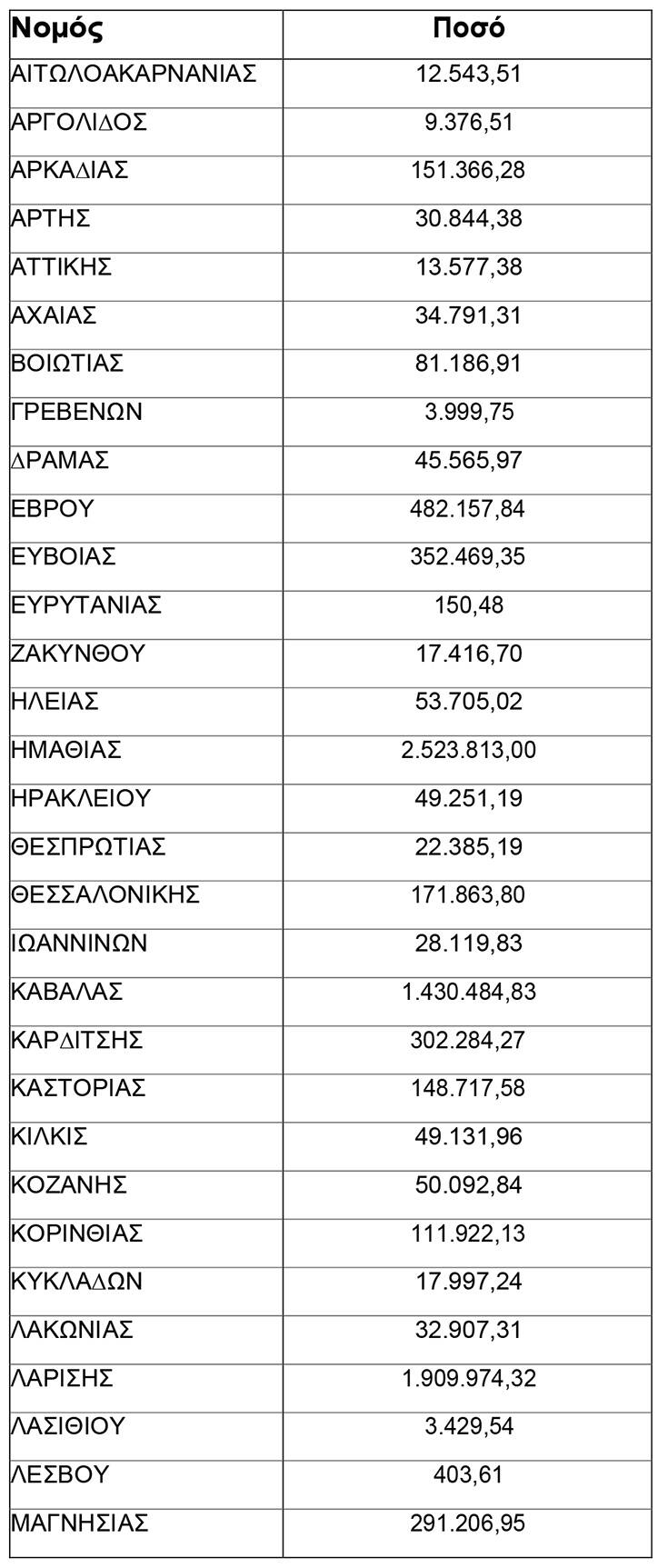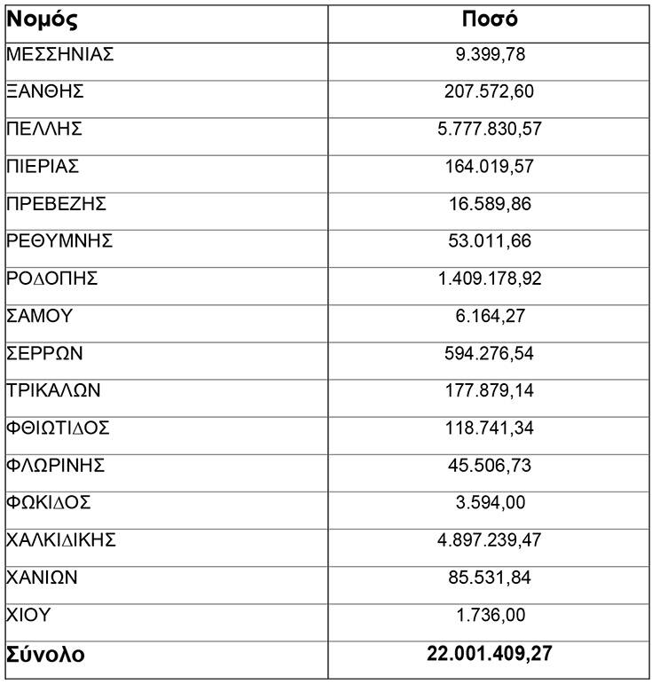 Το μεγαλύτερο μέρος των πληρωμών θα κατευθυνθεί στο νομό Πέλλας και θα ανέρχεται σε 5.777.830 ευρώ, ακολουθεί ο νομός Χαλκιδικής με 4.897.239 ευρώ και ο νομός Ημαθίας με 2.523.813 ευρώ.